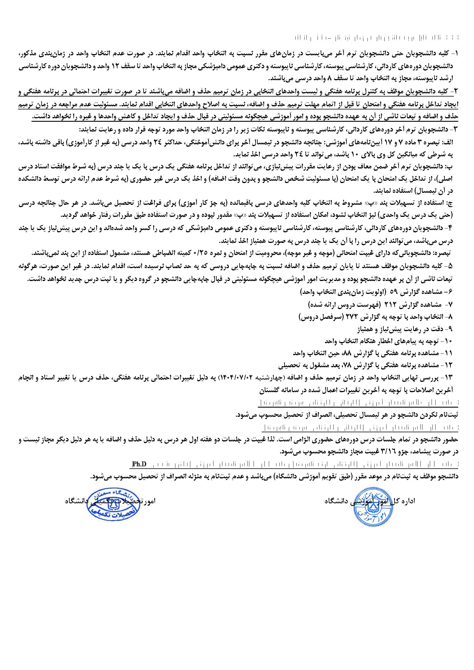 تقویم دانشگاهی و مراحل زمان بندی برخی موارد آموزشی نیمسال اول سال تحصیلی (1405-1404) 4041