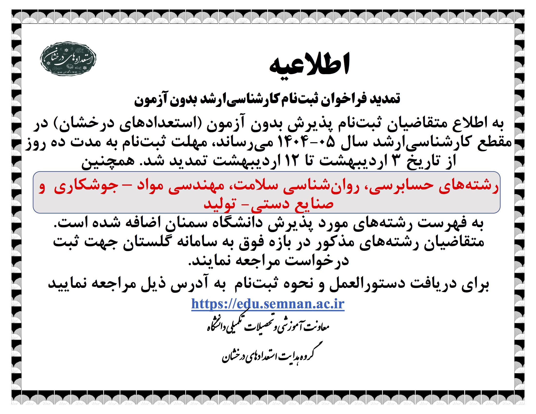 اطلاعیه در خصوص تمدید فراخوان ثبتنام کارشناسیارشد بدون آزمون