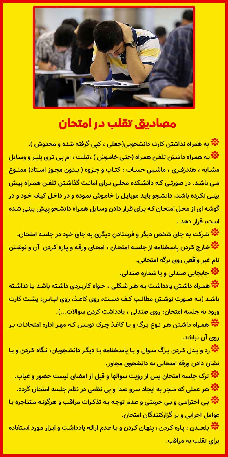 مصادیق تقلب در امتحانات