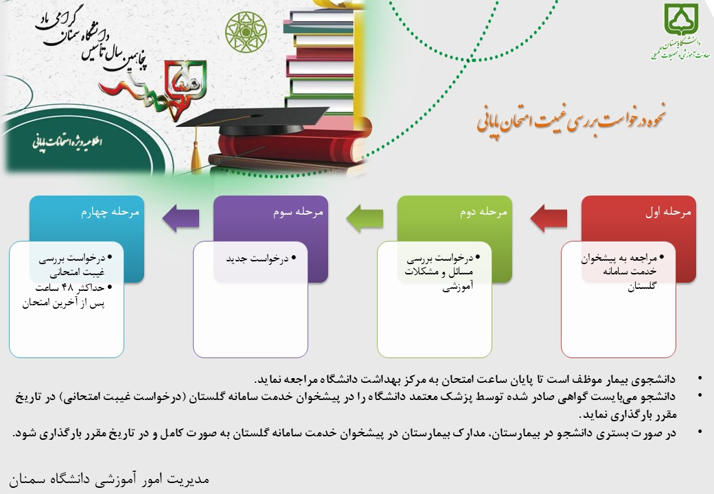 درخواست بررسی غیبت در امتحان پایانی 1404/03/11 - 08:33 تعداد بازدید: 479 درخواست بررسی غیبت در امتحان پایانی کلمات کلیدی