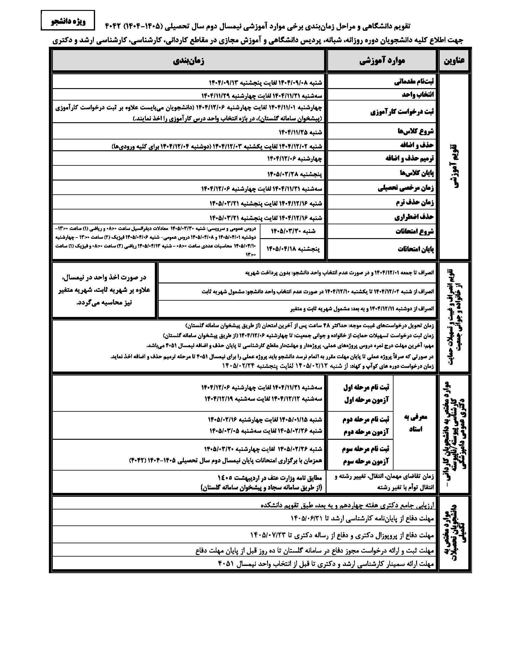 تقویم آموزشی دانشگاه برای نیمسال دوم سال تحصیلی ۱۴۰۵-۱۴۰۴ (۴۰۴۲) 1404/11/13 - 08:52 تعداد بازدید: 128 تقویم آموزشی دانشگاه برای نیمسال دوم سال تحصیلی ۱۴۰۵-۱۴۰۴ (۴۰۴۲) کلمات کلیدی