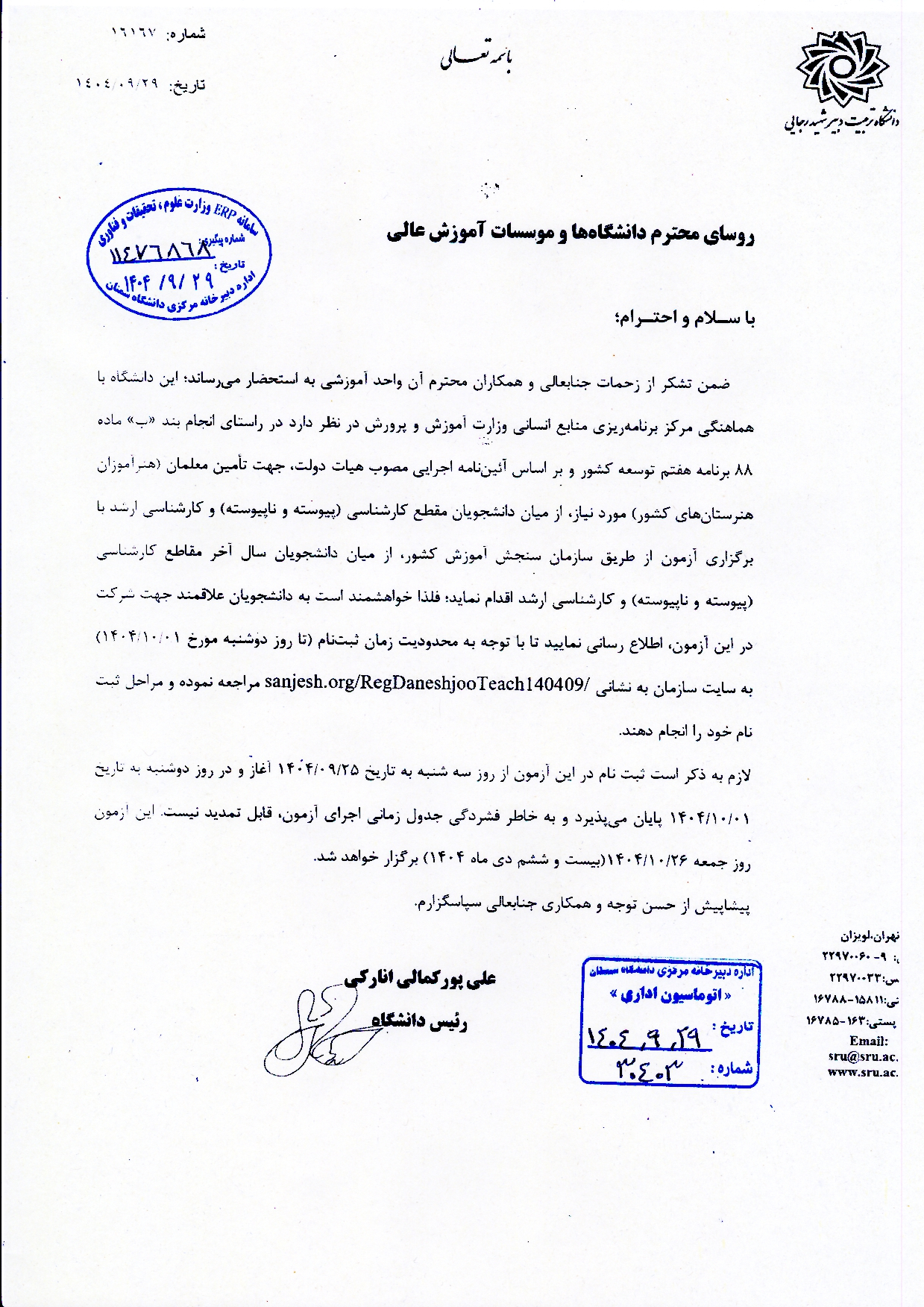 برگزاری آزمون جهت تامین معلمان (هنرآموزان هنرستانهای کشور) از میان دانشجویان مقطع کارشناسی و ارشد